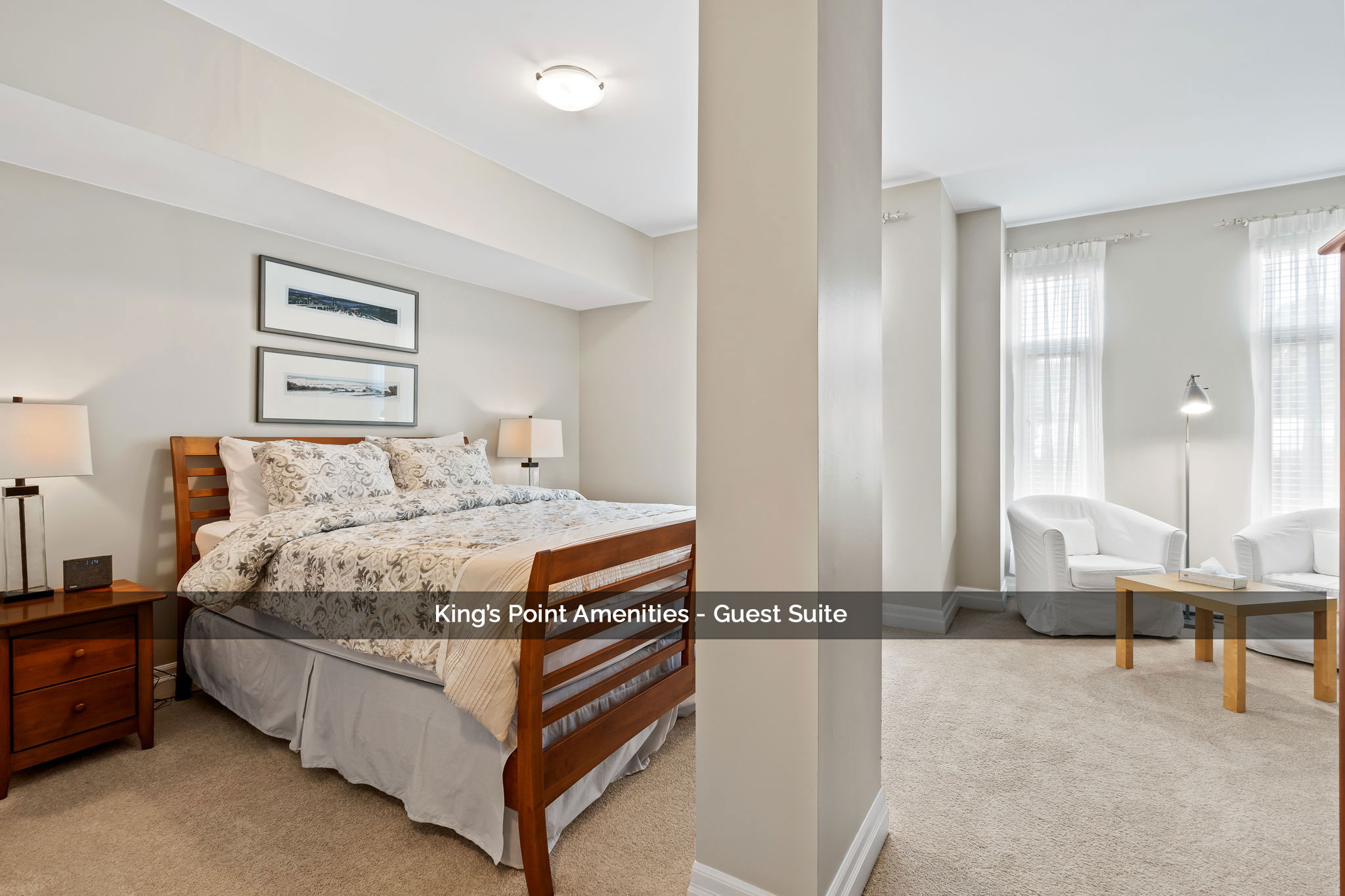 This secluded side of the King's Point complex provides a treed landscape and relaxing "cottage" feel. Enjoy the morning sun with this south east exposure. King's Point amenities include an outdoor salt water pool and spa, Muskoka Chair Terrace overlooking the Niagara River, BBQ Terrace, award-winning gardens, exercise room, Guest Suite booking privileges, underground parking, bike storage, and underground car washing bay. Bell Fibe Internet and TV is included in your condo fees.